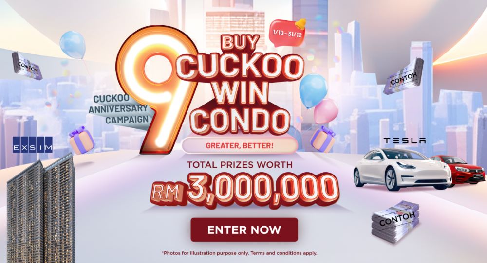 The “Beli CUCKOO Menang Kondo” campaign previously offered prizes worth RM2 million, but CUCKOO International decided to extend the campaign by adding another million Ringgit today.