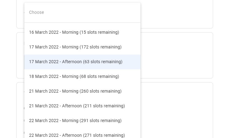 Slots for other days at the time of writing are still available as you can see below.