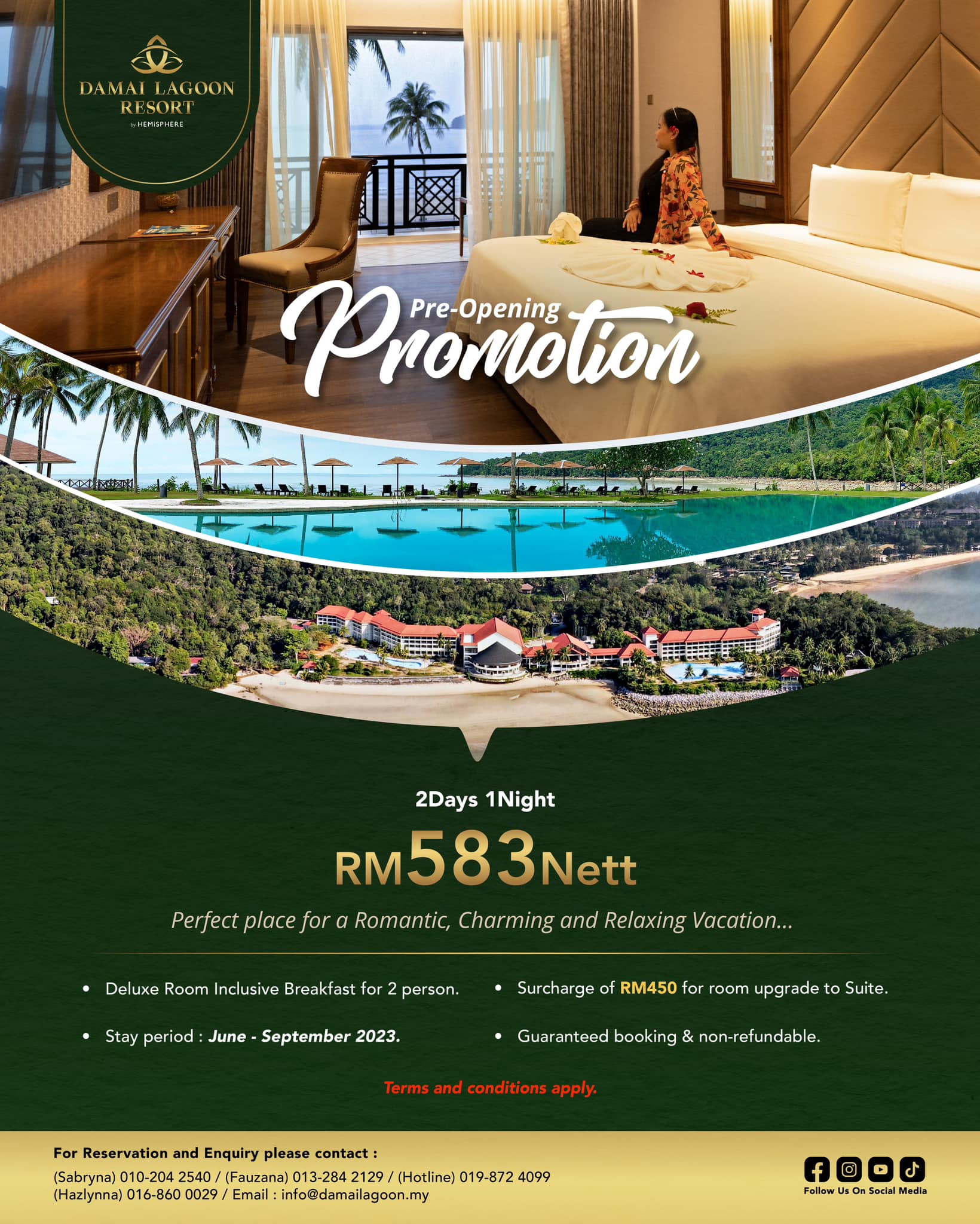 It is understood that the promotion cost RM583 nett for two during the stay which is expected at Damai Lagoon Resort from June to September 2023.