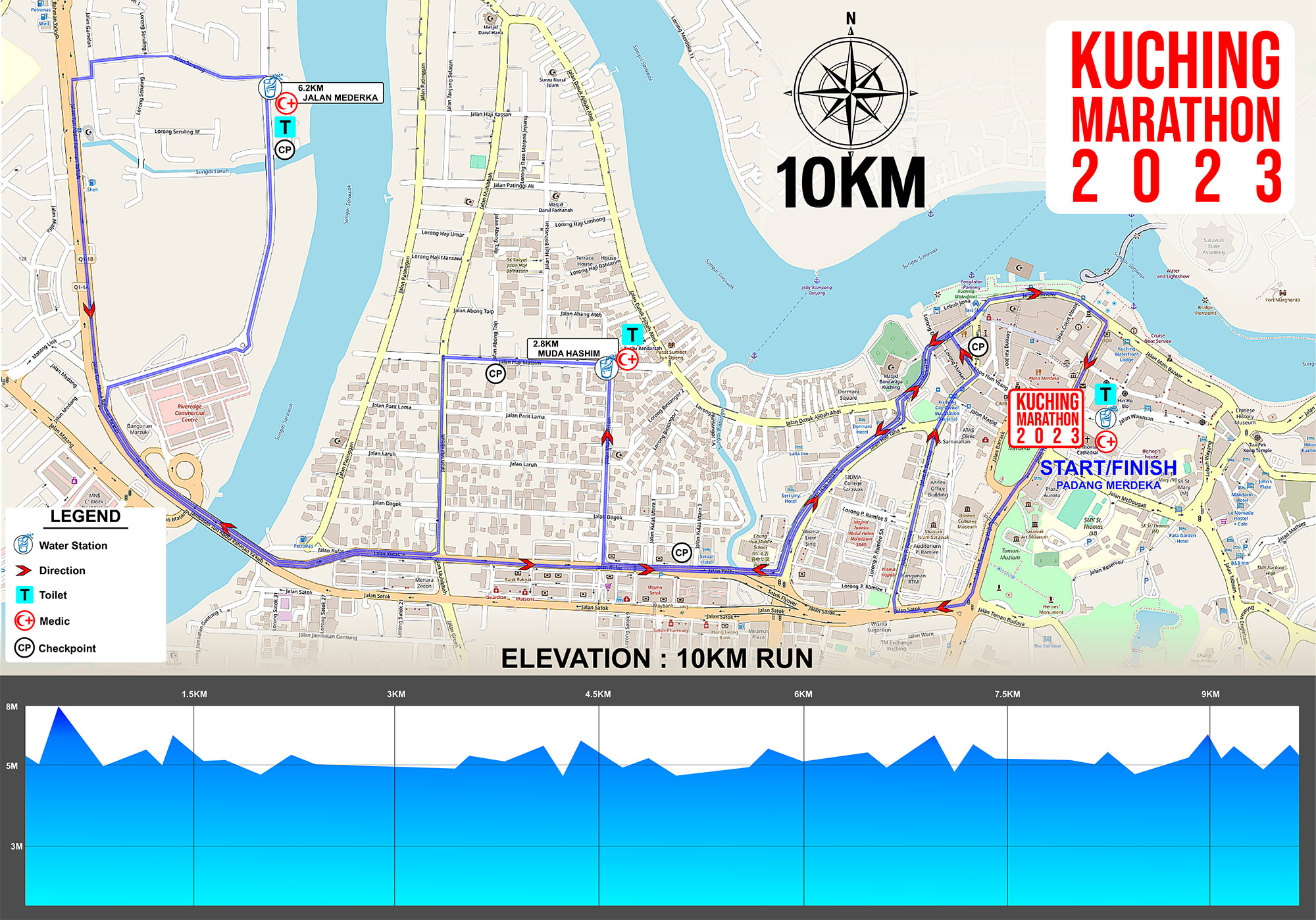 The 2023 Kuching Marathon will cover both the Kuching North and Kuching South of the city.