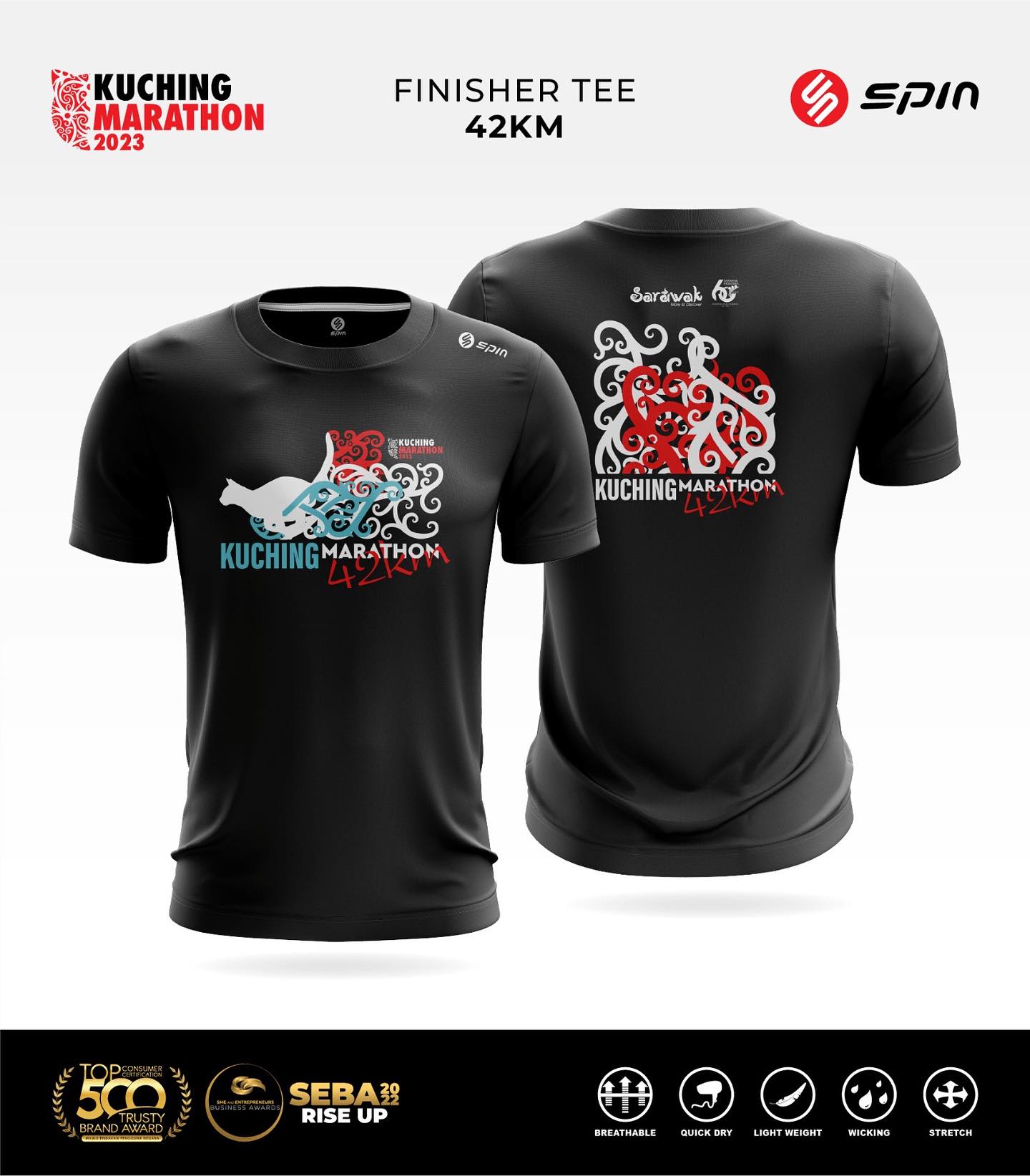 For those who complete the 42KM and 21KM, they will get the special black tshirt like below which will feature thei category they finished.