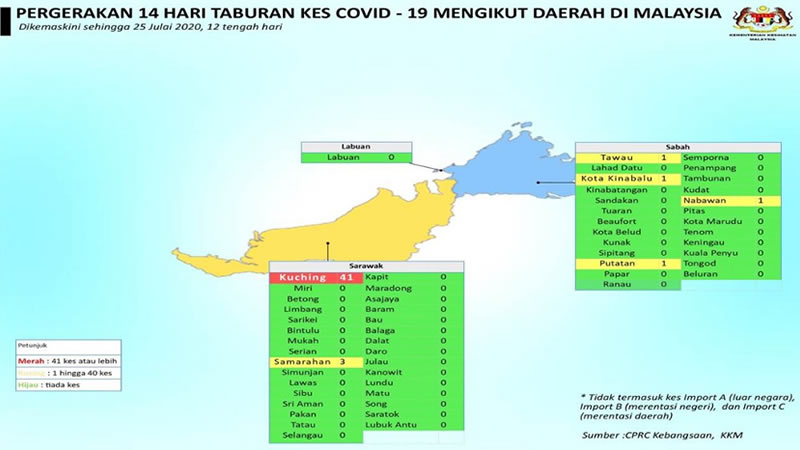 This puts Kuching with 41 cases, the biggest in Sarawak and Malaysia Borneo so far, and the only red zone for Covid-19 in Malaysia itself. In fact, it also puts Sarawak as the state with the biggest Covid-19 cases to date.
