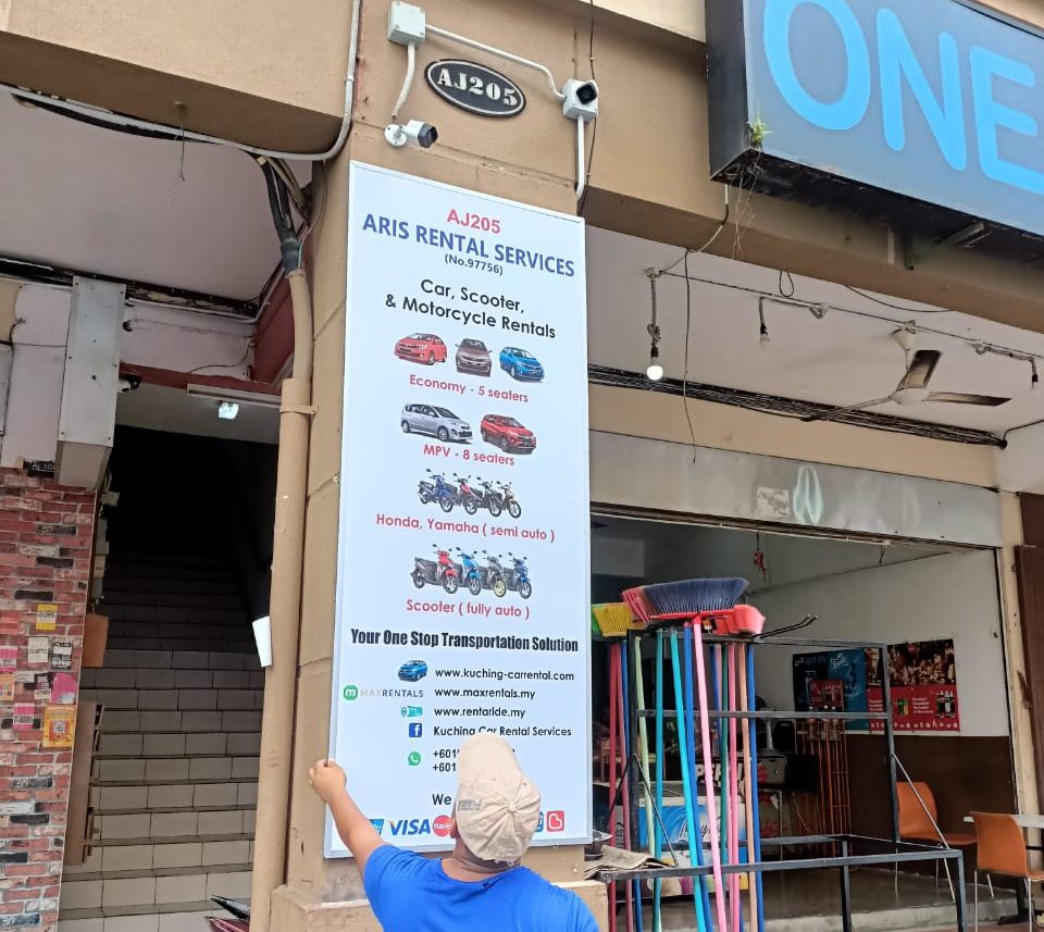 If you want to go to Aris Rental Services, you can find them at the map below. (They list themselves as Kuching Car and Bike Rental)