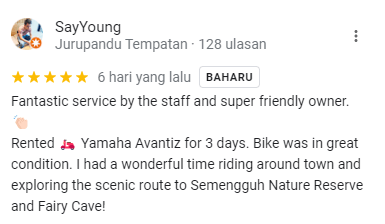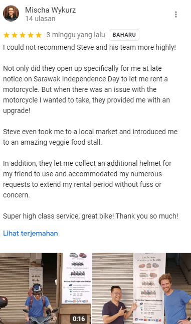 This motorcycle and scooter rental service in Kuching is one of the highly recommended places on social media.