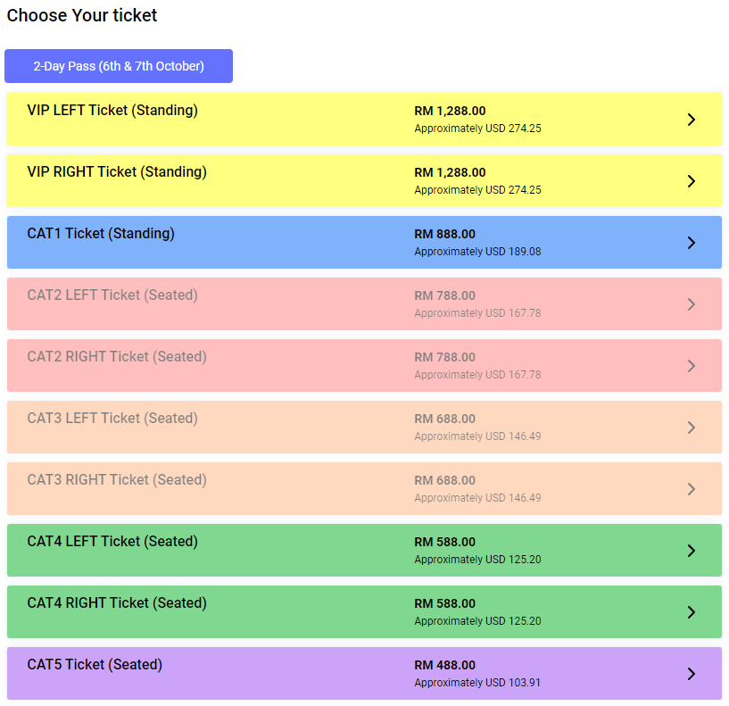 Checks on the website nonetheless also show CAT 2 zones are not open for sale at writing time, perhaps also sold out. Despite that, there isn’t any confirmation on the ticket status except that it had already hit 70% of sales.