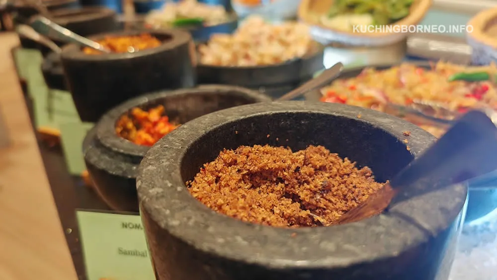 The Ulam: I think Sheraton Kuching Iftar Bliss Ramadan Buffet 2025 has one of the biggest numbers of sambals served for a ramadan buffet I’ve attended. There was 15 sambals alltogether. In my opinion, the sambal belacan (shrimp paste sambal) was the highlight among all the sambals despite being very spicy (but very good) as it was just perfect with the ulam-ulaman which featured the likes of petai, morning glory, egg plant, cabbage, and cucumber. I didn’t really take note of the names of the sambals (because there was so many), but I do remember there was sambals for geprek, sambal kacang, and if I’m not mistaken sambal terung asam, which was something very new for me. In addition, Sheraton Kuching also threw in popular authentic Melanau dishes like prawn umai, fish umai, and jellyfish umai within this section as well.