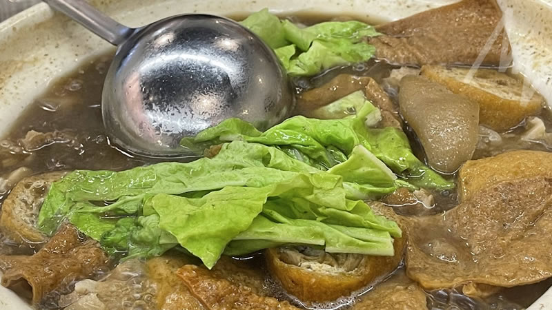 - About: Pork innards, tofu and ‘kuey’ mixed with a special soy sauce broth. Usually served with chillies at the sides. There’s no need to mix the chilly in the dish as the chilly sauce is usually just for dipping meat. Strictly non-halal.