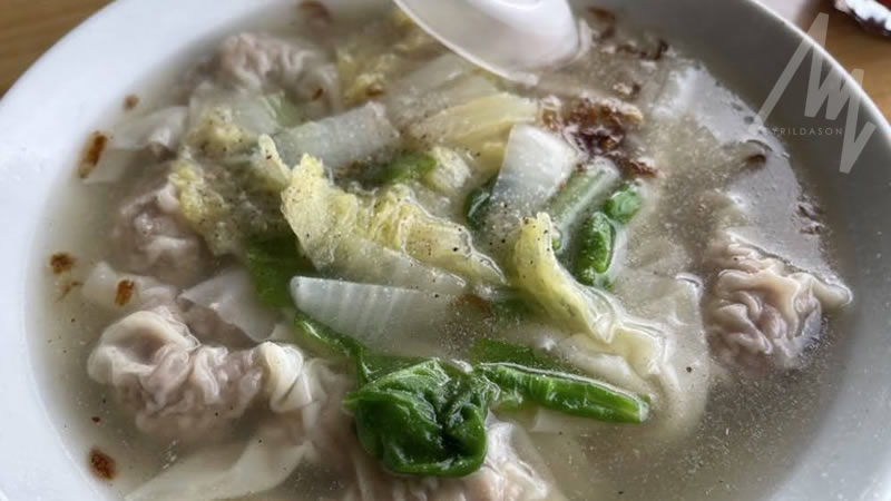 - About: Soup with wantan. Also comes with sliced chillies which is dipped in vinegar. Some like to mix the chillies and vinegar in the soup. Others don’t. Likely to be non-halal.